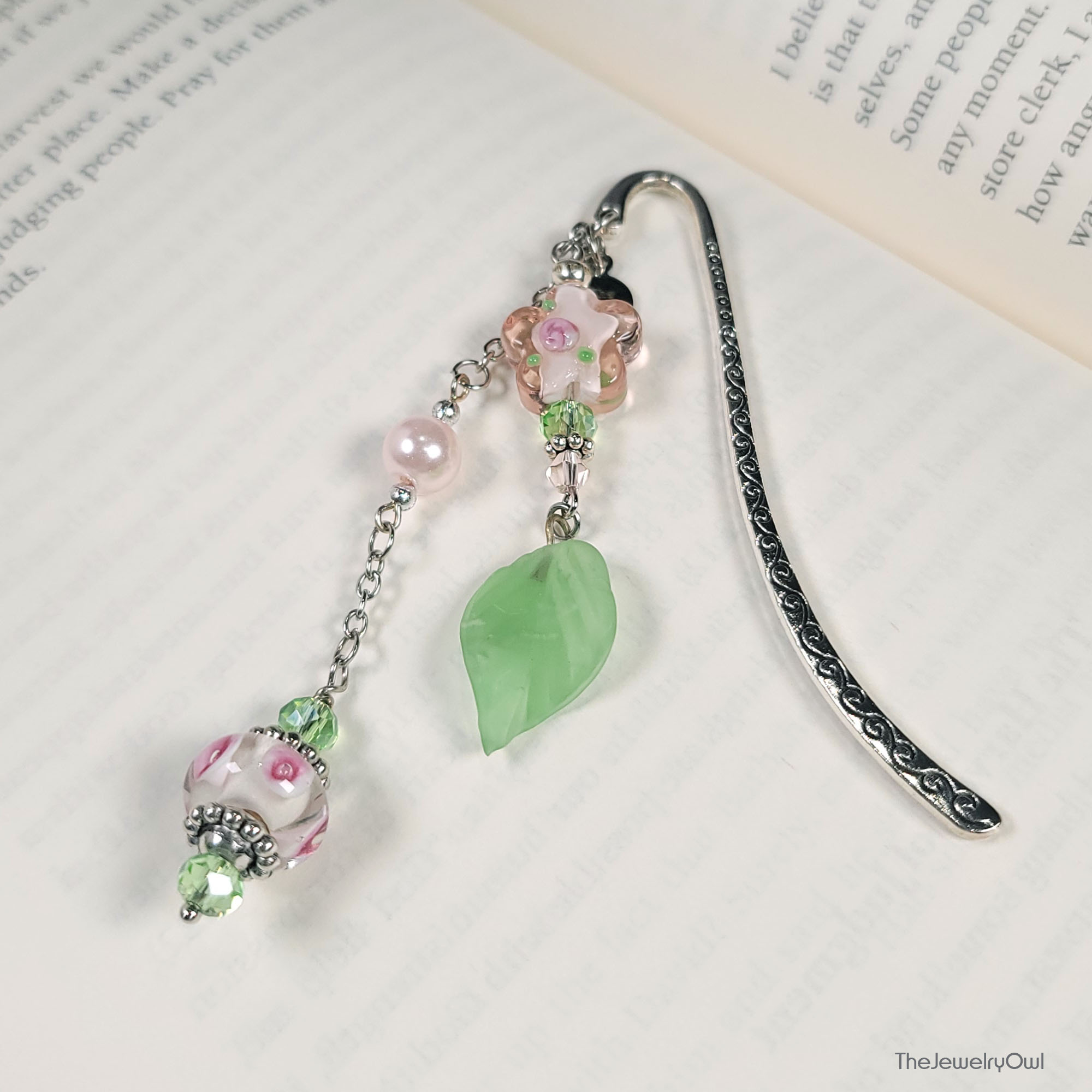 Add a little décor to your favorite gardening book with this pink and green shepherd's metal bookmark. Make for a cute gift for any gardener.