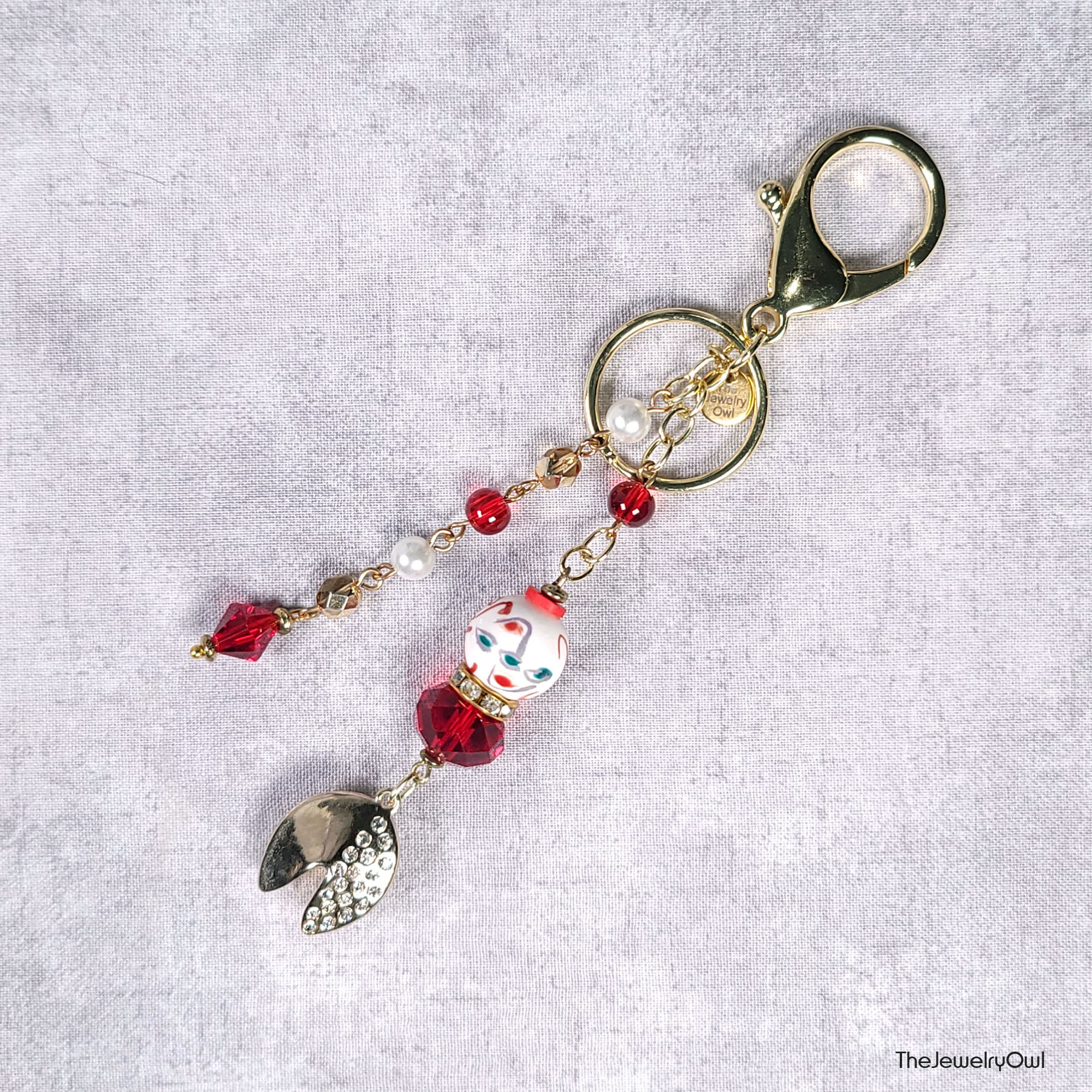 Carry a little good fortune with you! My gold and red beaded purse charm features a rhinestone fortune cookie and an Asian printed porcelain beads.