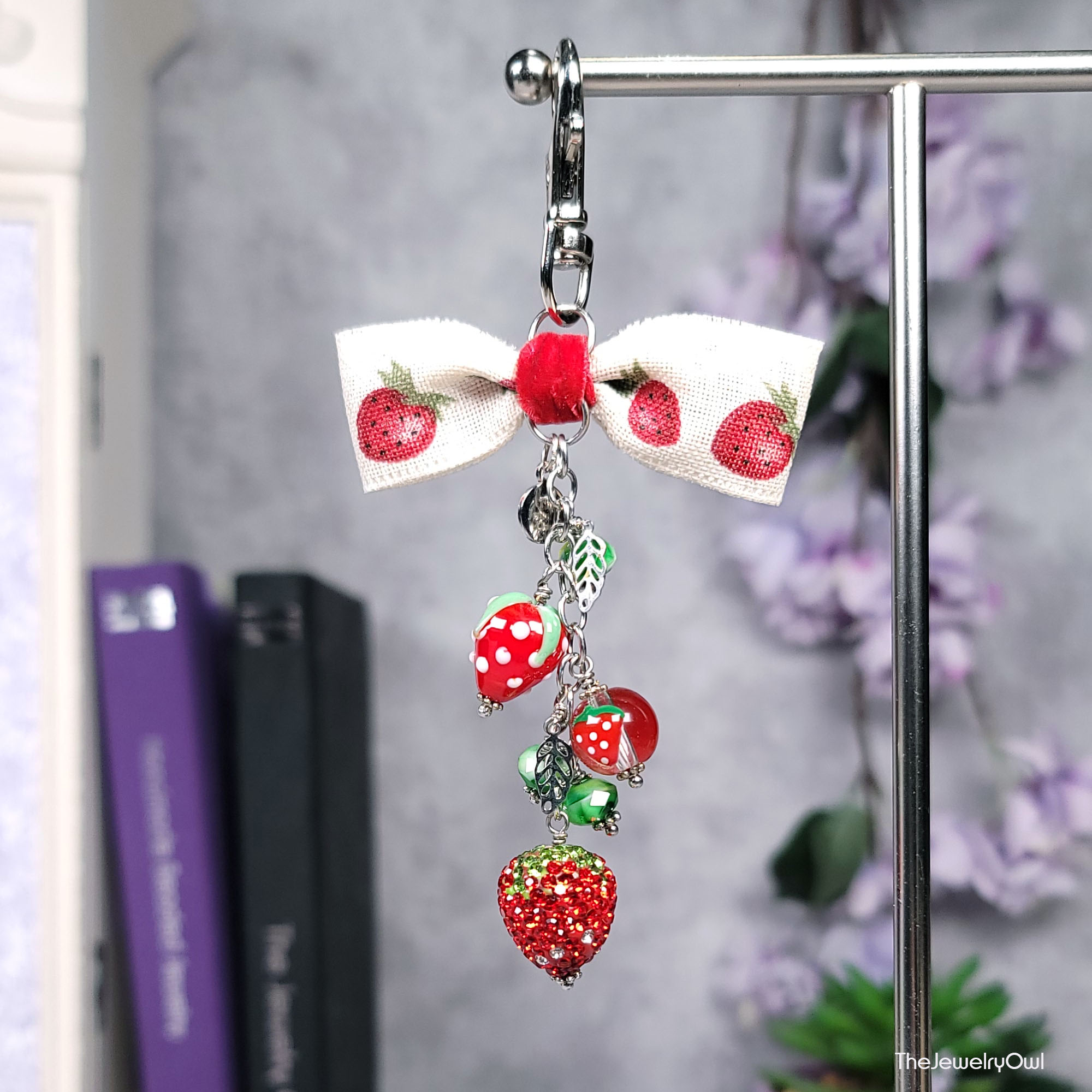 Strawberry Bow Bag Charm by The Jewelry Owl (thejewelryowl)