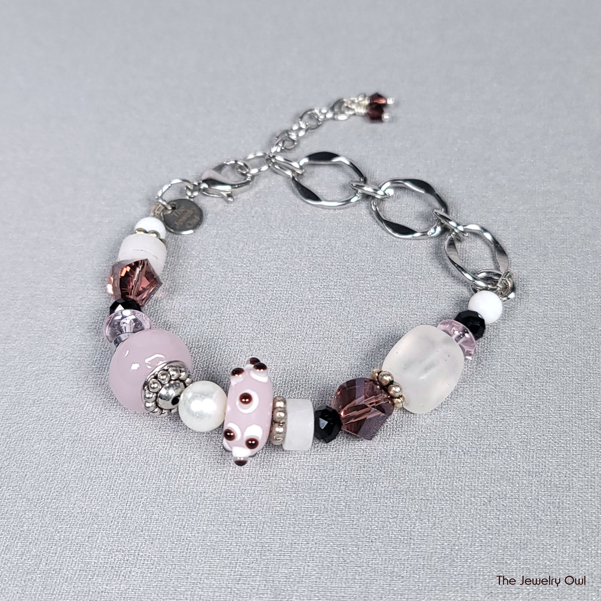 Frosted Pink and Amethyst Beaded Bracelet by The Jewelry Owl (thejewelryowl)