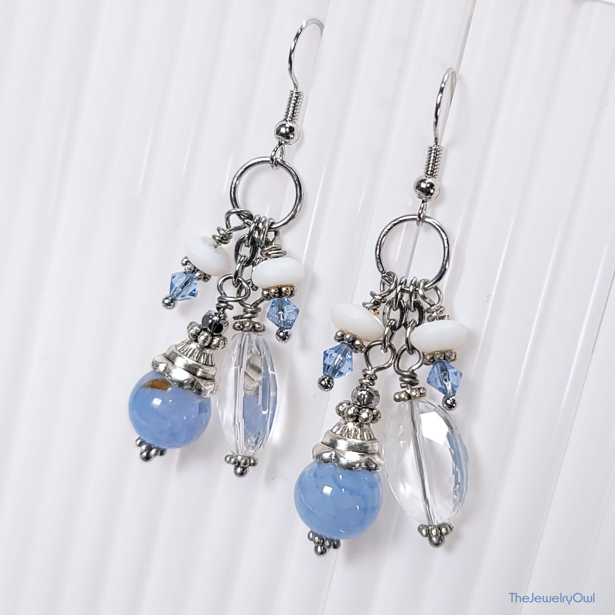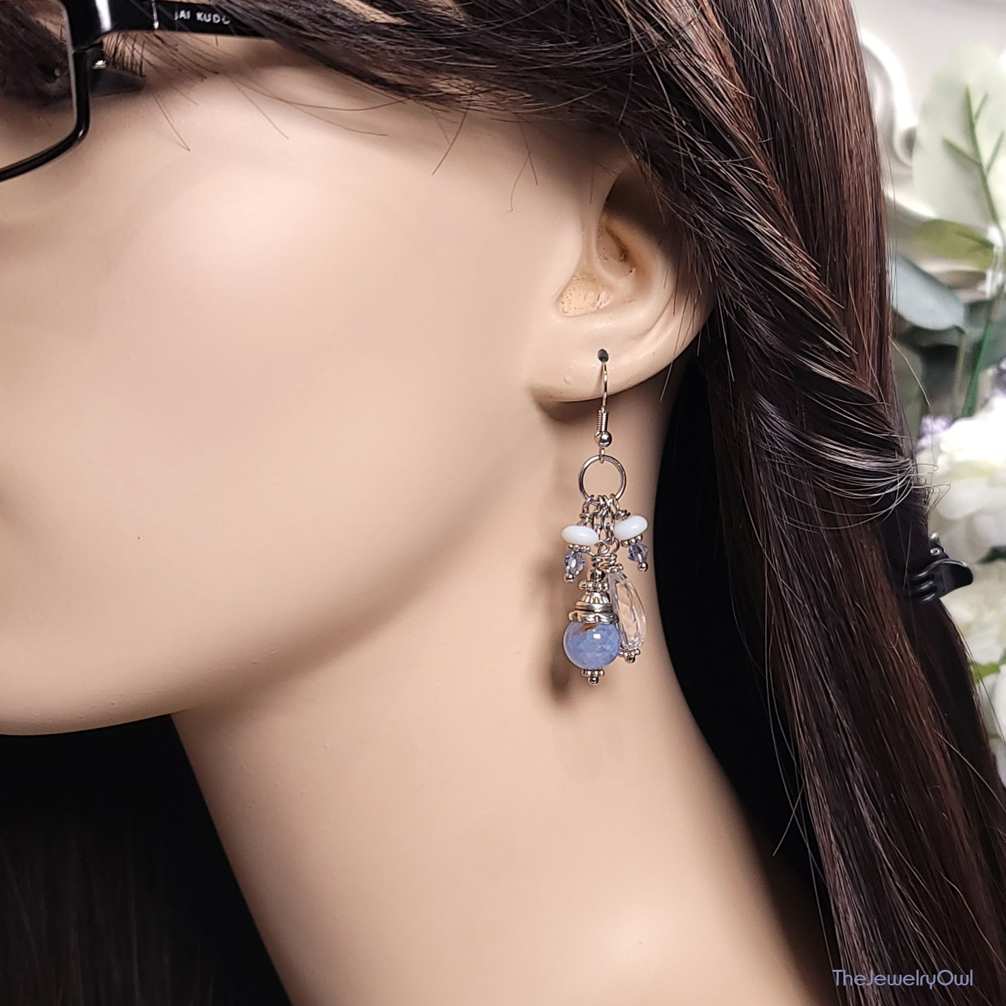 Blue fire agate earrings feature and array of dangling beads for an elegant look.