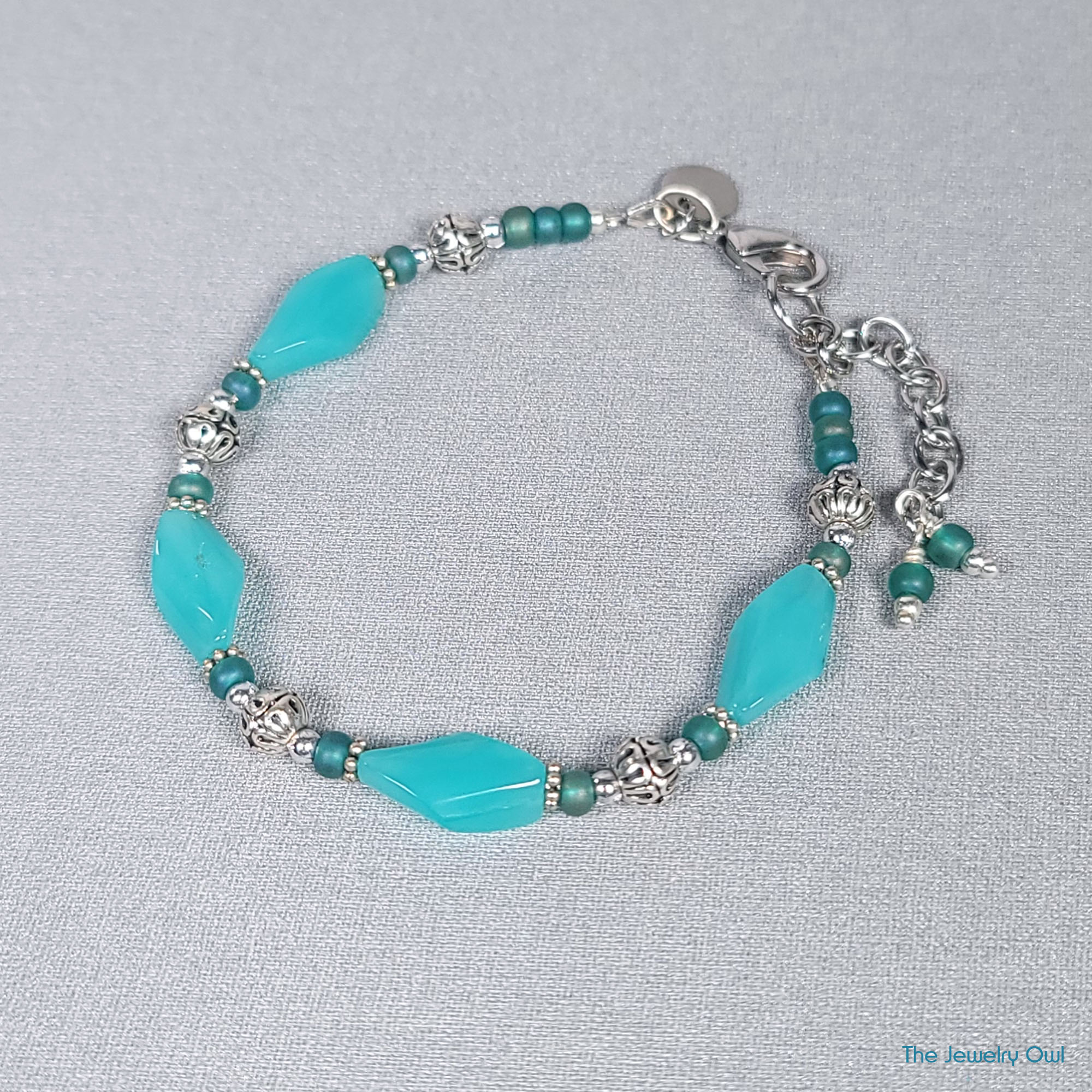 Green Turquoise and Silver Beaded Bracelet by The Jewelry Owl (thejewelryowl)