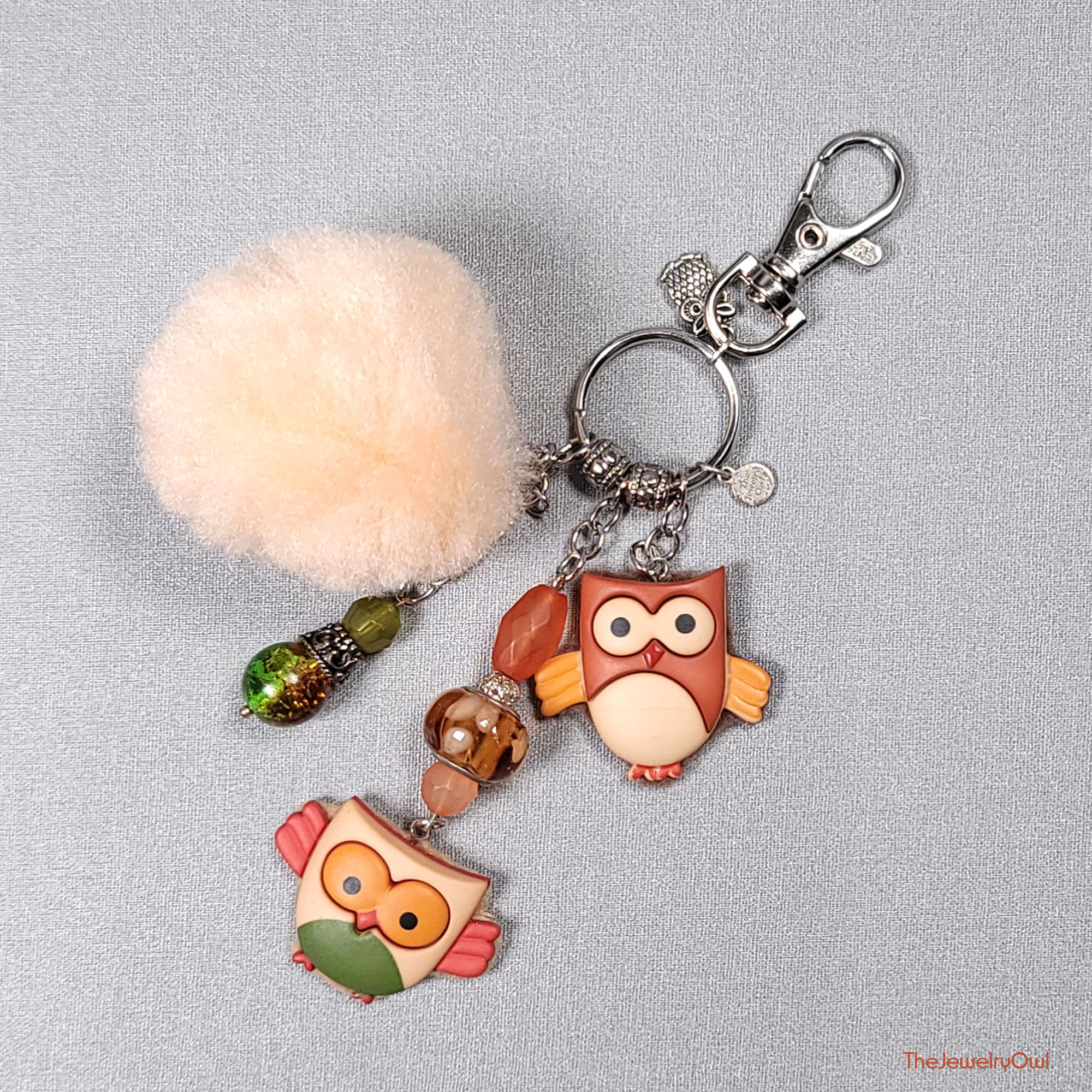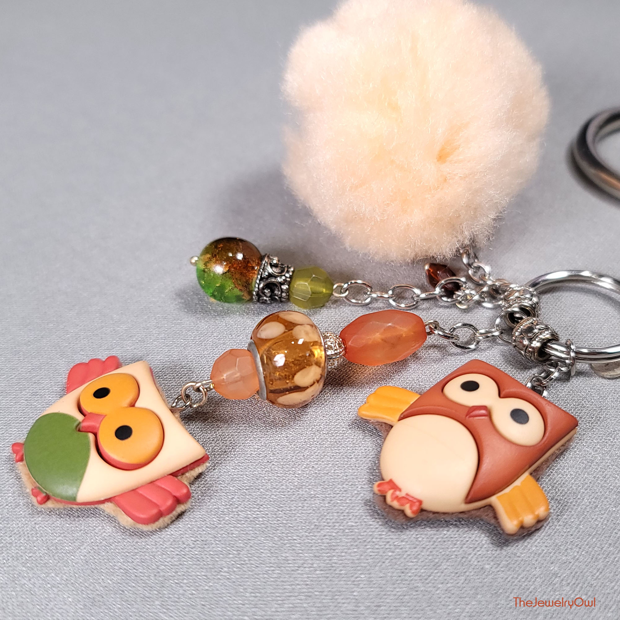 Owl Button Pom Pom Purse Dangle Charm by The Jewelry Owl (thejewelryowl)