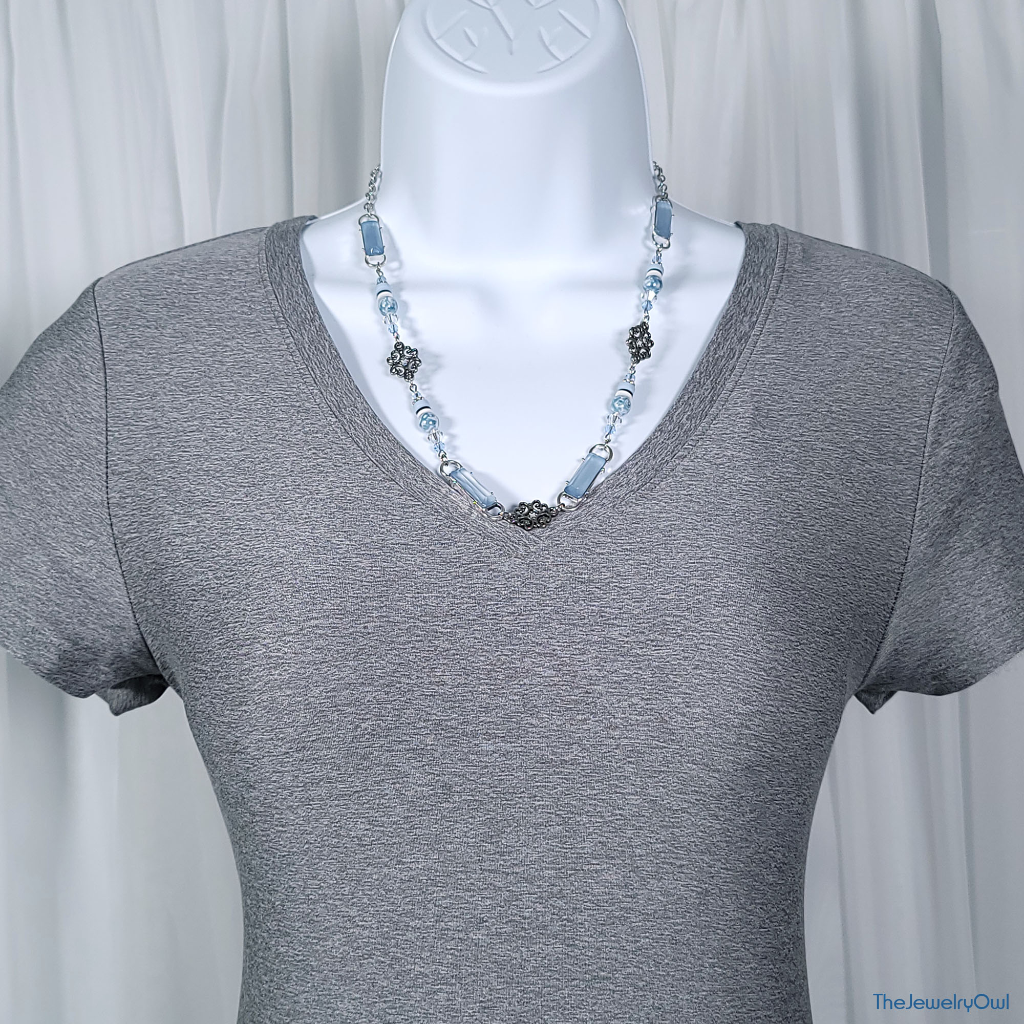 Aqua Blue Bar and Filigree Bead Necklace by The Jewelry Owl (thejewelryowl)