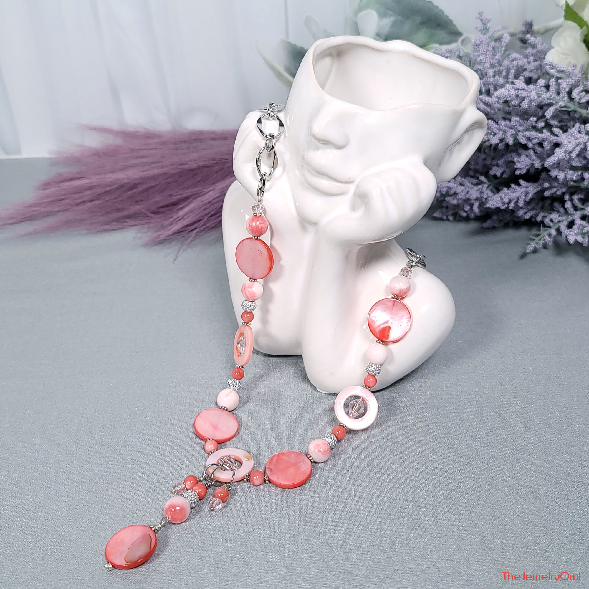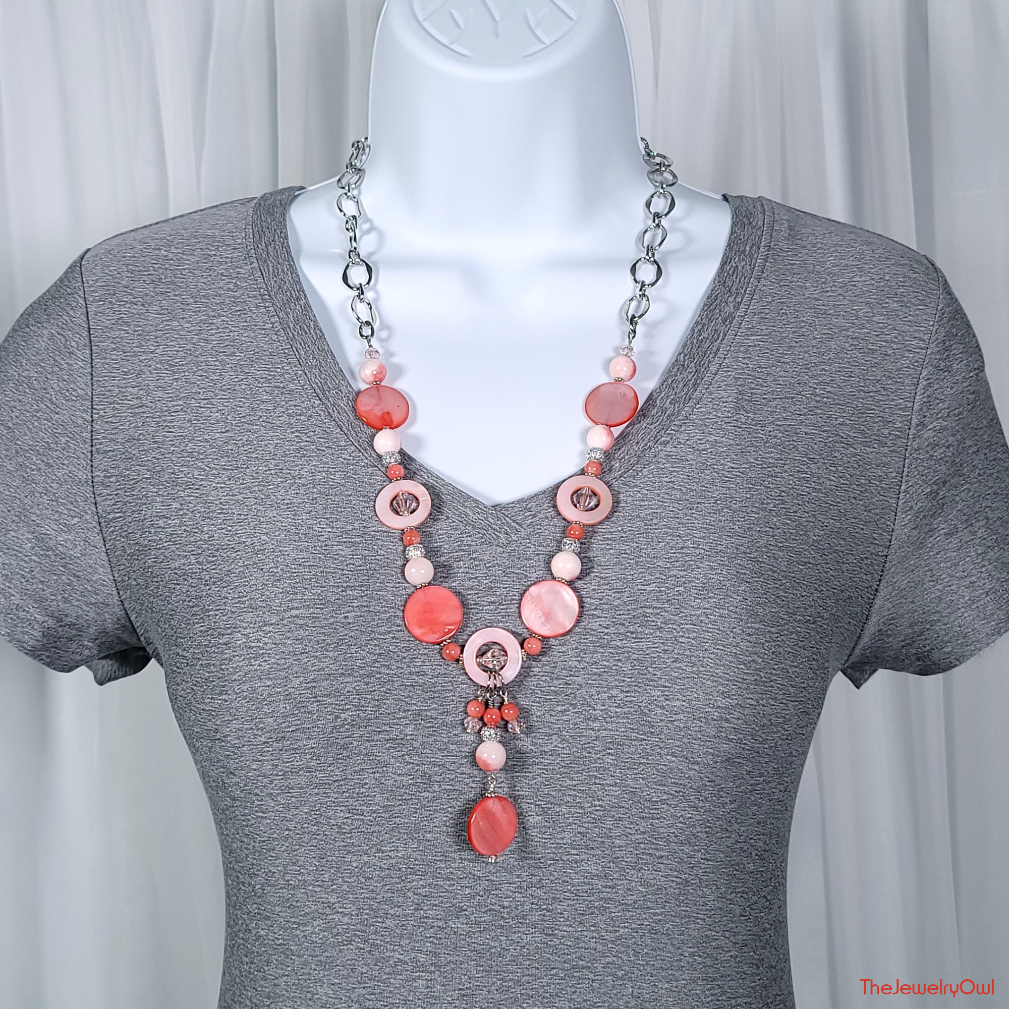 Pink Coral Shell Bead and Chain Necklace by The Jewelry Owl (thejewelryowl)