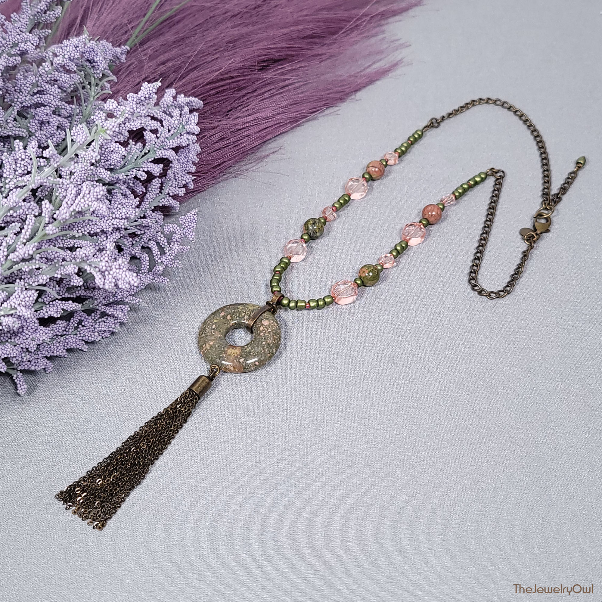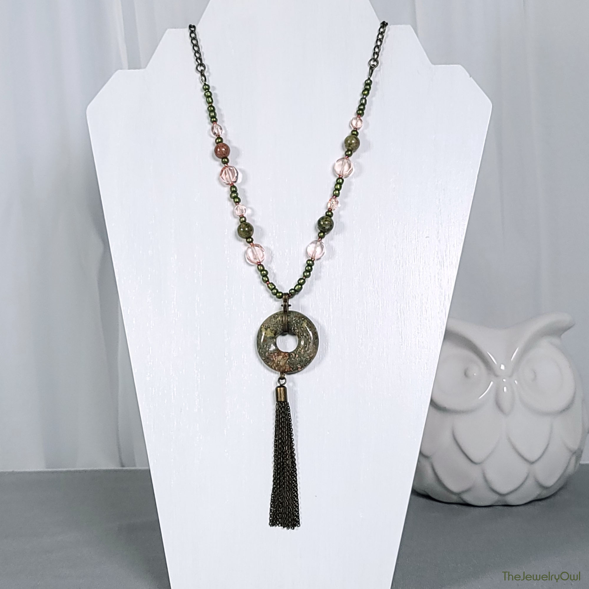 Unakite Donut Tassel Pendant Necklace by The Jewelry Owl (thejewelryowl)